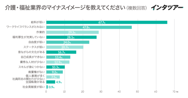マイナスイメージは「給与が低い」「ワークライフバランスが取れない」が上位