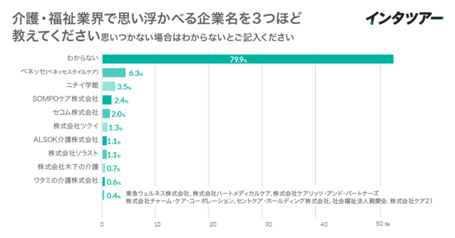 介護・福祉業界で思い浮かべる企業「わからない」が79.9%…知名度の低さに課題