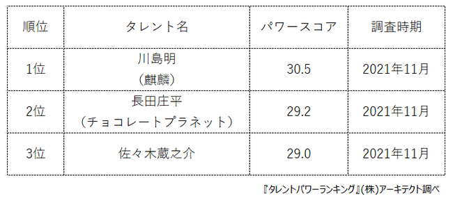 株式会社アーキテクトが実施しているタレントパワー定期調査から、2021年11月度調査のデータを使用。(一部過去のデータを使用)
