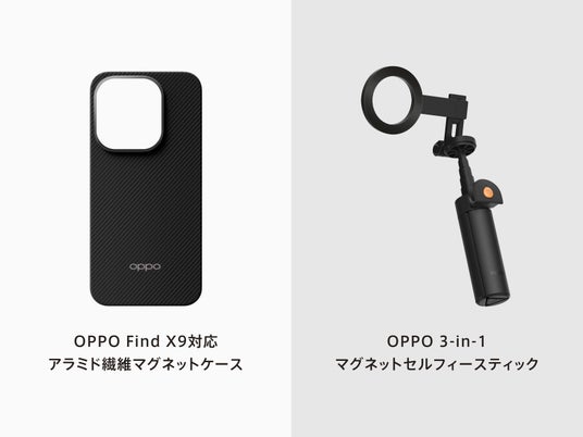 OPPO Find X9専用の「OPPO 3-in-1マグネットセルフィースティック」と、「OPPO Find X9マグネット対応アラミド繊維ケース」も同時発売します。