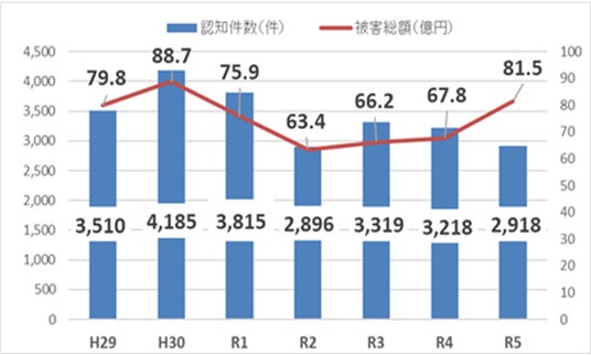 ※警視庁犯罪抑止対策本部 「令和5年における特殊詐欺の状況について」より作成