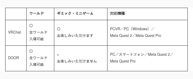 ・プラットフォーム:VRChat/DOOR