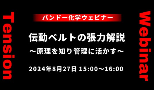 バンドー化学株式会社(本社:兵庫県神戸市)は、ウェビナー「伝動ベルトの張力解説~原理を知り管理に活かす~」を開催いたします。伝動ベルトの張力は、ベルトを使用するうえで重要なファクターの1つです。張力を適切に管理することで、ベルト本来の伝動能力を発揮することができます。