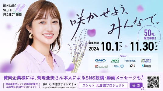 株式会社Wunderbar(本社:東京都渋谷区、代表取締役:長尾慶人)が運営する「HOKKAIDO SKETTT. PROJECT(北海道スケットプロジェクト)」は、本日2024年10月1日(火)より、本プロジェクトの賛同企業の募集を開始いたしました。北海道出身のタレント・菊地亜美さんがPRでお困りの地元企業を支援し、地方創生に取り組んでまいります。