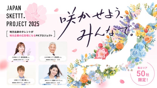 「JAPAN SKETTT. PROJECT(ジャパン・スケット・プロジェクト)」は、「咲かせよう、みんなで」をキャッチコピーに、地方出身タレントがPRでお困りの地元企業さまを支援するプロジェクトです。