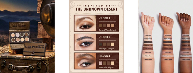 そして今回は、神秘的で雄大な砂漠を連想させる魅惑的なカラーバリエーションを揃えた新コレクション『LIVE TO ROAM』の販売を開始いたしました。本コレクションは、砂漠が魅せる様々な表情からインスパイアを受け、普段のメイクにも取り入れやすいカラー展開はもちろん、使い心地にもこだわったコレクションです。ラインナップは、なじみやすい陰影カラーでエキゾチックな目元を演出するアイシャドウをはじめとして、スモーキーカラーで抜け感をプラスするアイライナー、ヌーディーなカラー展開とマットな質感で魅惑的な口元に仕上げるリップスティックをご用意しています。