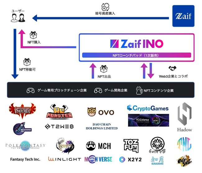 当該「Zaif INO」ローンチパッド(1次販売)では、様々なWeb3企業とのコラボレーションを予定しています。NFTを出品するゲーム開発企業など、決定次第、発表してまいります。