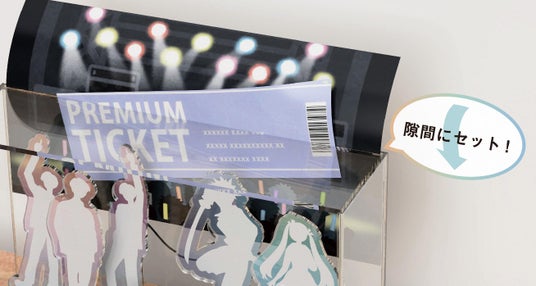 ケース背面には好きなイラストや写真・チケットなどを入れられるスペースがあり、背景を作って迫力や臨場感を演出したり、思い出のチケットを飾るなど、推しの世界観を一つのケースにぎゅっと詰め込めます。背景収納可能サイズはコンビニプリントで印刷可能なサイズなので誰でも簡単に背景を用意できます。