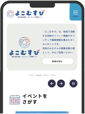 地域活動の促進や、新たな担い手の創出につなげることを目指し、自治会町内会やNPO、ボランティア団体などの市民活動団体等が、イベント情報やボランティア募集情報を掲載できる、横浜地域活動・ボランティア情報サイト「よこむすび」を青葉区・都筑区で令和7年4月17日に先行オープンしました。令和8年度以降、全18区に拡大を予定しています。