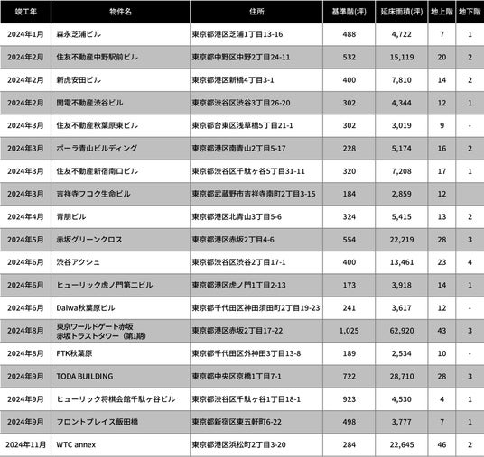 ・当社集計対象:延床面積3,000坪以上のオフィスビル
