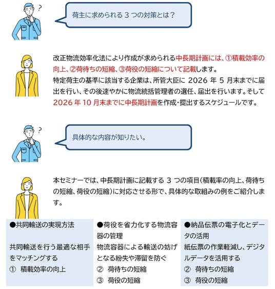 - セミナータイトル:改正物流効率化法が求める3つの課題への具体策