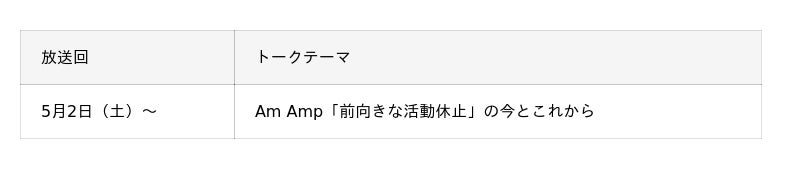 番組では、今年3月26日の単独ライブをもって「前向きな活動休止」となったAm Ampの今とこれからについて語っています。休止中も楽曲制作や、月1回継続されるファンクラブ限定イベントなど、再始動に向けてポジティブなニュースをご紹介。また、番組恒例の「マイ哲学」では、須賀京介さん、矢沢もとはるさんがそれぞれに持つユニークな個性が明らかになります。