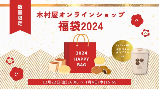 2024年木村屋オンラインショップで「福袋」の予約受付を開始します。伝統の味「酒種あんぱん」や人気商品の「全粒粉100%食パン」、「あんバターホイップ」などの人気の菓子パンもご用意しました。さらに、今年はオンラインショップ限定「オリジナルタンブラー」付き!お届けは1月6日(土)からです。