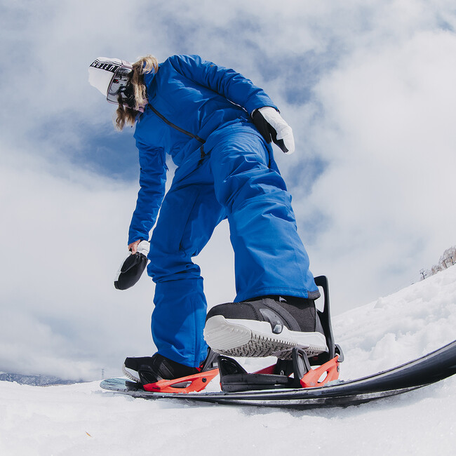 Burtonのエントリーモデルとして人気のMen’s InstigatorとWomen’s Stylusは、ソフトフレックスで逆エッジを防ぐ構造になったオールラウンドボードです。きっと、初めてのその日からライディングの楽しさを味わえるでしょう。足まわりには、通常のストラップバインディングより素早く簡単に装着できるSTEP ON(R)︎をセット。さらにボードバッグ付きで、届いた瞬間からあなたのスノーボードシーズンが始まります。シーズンレンタルで最高の冬をお過ごしください。
