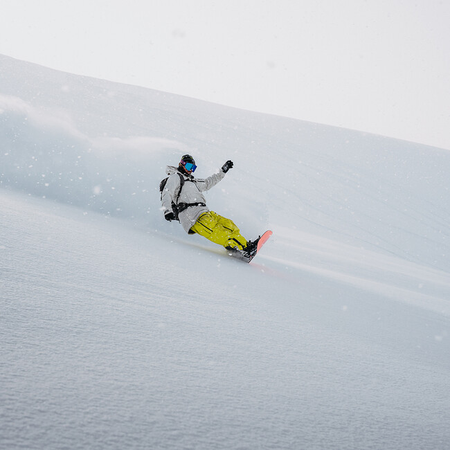 そして、3つ目の「テストライドセンター(https://www.burton.com/jp/ja/test-ride.html)」は、購入前に、Burtonの最新モデル(スノーボード、バインディング、STEP ON(R)︎)を借りて、雪上で試すことのできるハイスペックなレンタルサービスです。“乗りたい時にだけ乗りたいタイプのギアを、スマートにシェアする”というような選択肢とも言え、例えば、普段は車で行きやすい近場のゲレンデで滑っているけど、テストライドセンターをかしこく使えば、普段行かないような遠いエリアのゲレンデに新幹線に乗って“手ぶら”で移動し、現地でその日のコンディションに合わせて乗りたいギアをチョイスするといった楽しみ方も可能になります。もちろん、最新のギアを幅広く揃えているので、購入検討中の最新モデルを存分にテストするといった利用の仕方もあります。