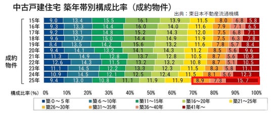 中古戸建住宅 築年帯別構成比率(成約物件) 出典:東日本不動産流通機構