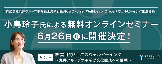 累計13,000社370万人以上の組織開発と人材開発を支援し、複数の業界初サービスを開発する株式会社ラーニングエージェンシー(本社 東京都千代田区、代表取締役社長 眞崎大輔)は、6月26日(月)に株式会社丸井グループより取締役上席執行役員CWO、ウェルビーイング推進部長、産業医の小島玲子氏をお招きし「経営目的としてのウェルビーイング」というテーマで、スペシャルセミナーを開催いたします。