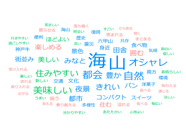 ・選択式のアンケートでは、「あなたが思う『神戸といえば〇〇やんなぁ』という問いで、約85%の方が「市民は神戸に誇りを持っていると回答しました。「夜景が美しい」、「海と山に囲まれた自然豊かな環境」、「オシャレ」、「都会でありながら、田園・里山もあるまち」という設問も当てはまると答えた方が多い結果となりました。詳細は神戸市のホームページ(https://www.city.kobe.lg.jp/a47946/sougoukihonkeikaku6.html)
