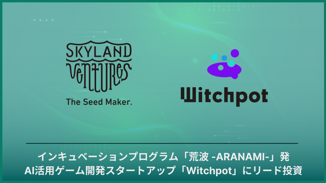 また、Witchpotは、Skyland Venturesが主催するインキュベーションプログラム『荒波 -ARANAMI-』を通じて生まれたスタートアップであり、資質・革新性を認められ出資に至っています。プログラムを通じて得た知見やネットワークを活かし、Witchpotはゲーム開発業界におけるGenerativeAIの活用を推進していくことが期待されています。