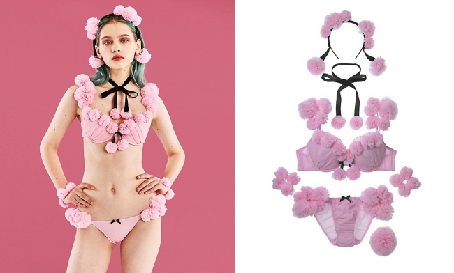 女子とプードルの良いところだけを組み合わせたかのようなセット。ポンポンを身体のあらゆる箇所に身にまとうことができる仕掛けとなっており、インパクトは抜群です。ブラとパンティのほか、カチューシャ、ベロアチョーカー、ブレスレット(2個)が含まれたコストパフォーマンスも抜群のセットです。