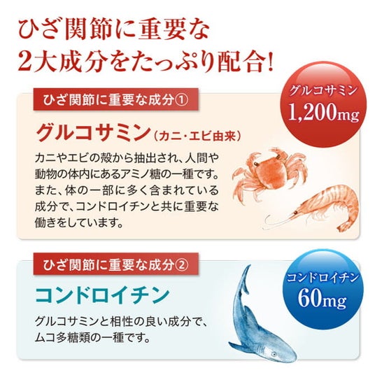 グルコサミン塩酸塩 1,200mg、サメの軟骨由来コンドロイチン硫酸 60mg