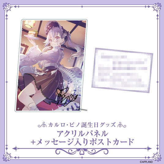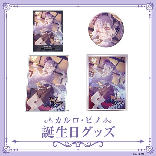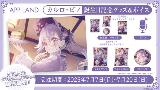 7月7日(月)に誕生日を迎えたカルロ・ピノの誕生日記念グッズ&ボイスを、当社が運営する公式グッズ販売サイト(APPLAND OFFICIAL SHOP)にて販売しております!記念ボイスにはVRバージョンが用意されており、BOOTHで購入可能です。ここでしかゲットできない誕生日限定グッズ&ボイスをお楽しみください!