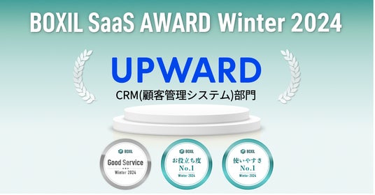 UPWARD株式会社(本社:東京都千代田区、代表取締役社長 CEO:金木 竜介、以下 UPWARD)が提供する「UPWARD」 は、スマートキャンプ株式会社(以下「スマートキャンプ」)が主催する「BOXIL SaaS AWARD Winter 2024」のCRM(顧客管理システム)部門で「Good Service」、「お役立ち度No.1」、「使いやすさNo.1」に選出されました。