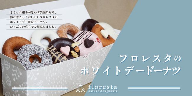 株式会社フロレスタ(本社:大阪市浪速区/代表取締役社長:辻尾吉厚)は、手作りドーナツ専門店「フロレスタ」にてホワイトデー限定ドーナツを3月14日まで販売しております。※一部店舗を除く