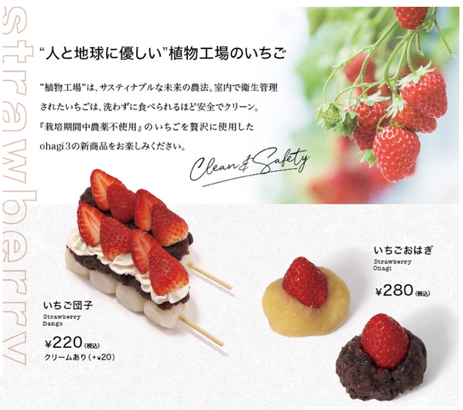 ・和菓子屋 OHAGI3下北沢店とコラボした「City Farming」産いちごメニューの販売