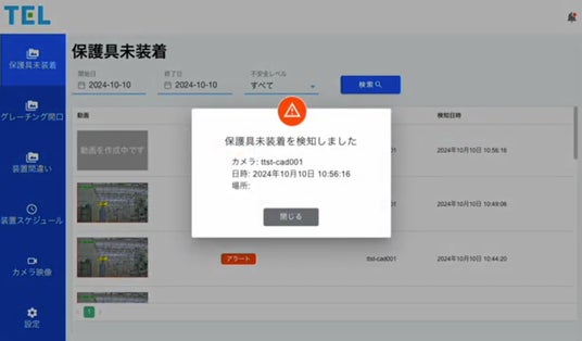 一例として、作業中に一時的に保護メガネを外してしまう場面でも、即座にアラートを発報することでリアルタイムで注意を喚起し、労災リスクを未然に防ぐことが可能です。また、その時の状況を記録した動画を後から確認し、なぜそのような行動が発生したのかを振り返り、改善に生かすことが可能になりました。その結果、現場の安全意識が向上しました。