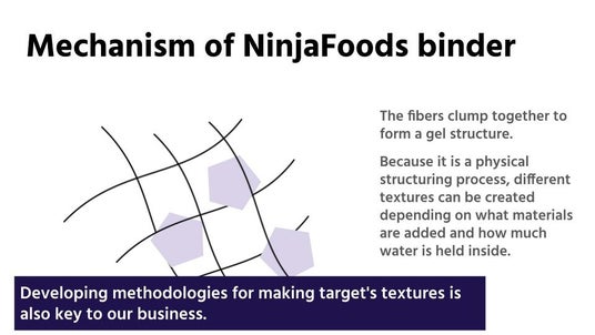 ■専用設備不要。混ぜて焼くだけで固まる「ニンジャのような」結着成型技術