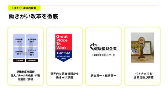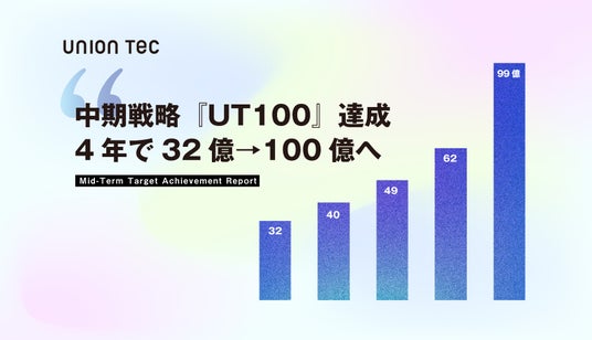 「Build a new standard.」をミッションに掲げ、オフィス・商空間・住宅の内装デザイン・設計・施工をワンストップで提供するユニオンテック株式会社(東京都渋谷区、代表取締役社長:大川祐介)は、2025年の受注高が100億円に至り、過去最高売上の更新と4年前2021年に宣言した「UT100(2025年100人100億)」を実現しました。