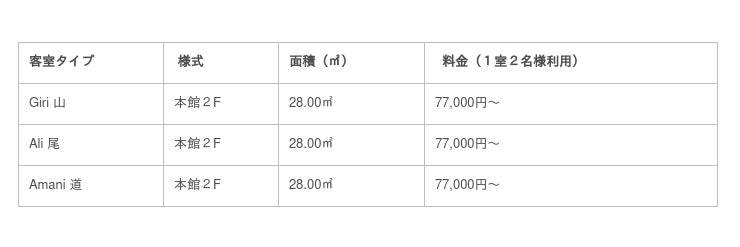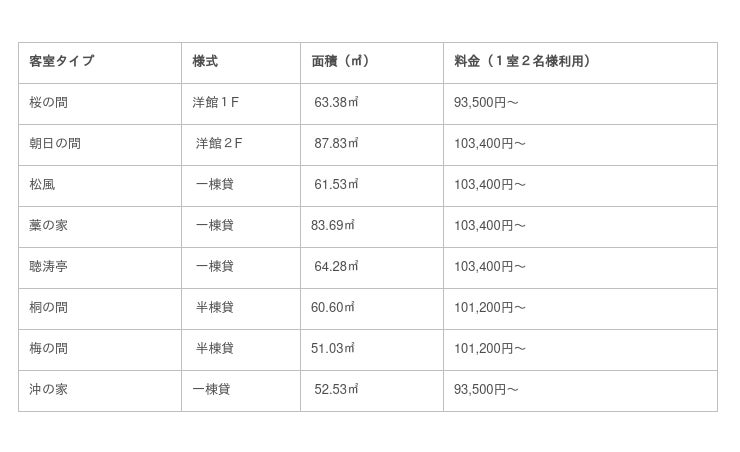 ◯ 部屋タイプ料金( 1室あたりの料金 / 2 名様利用 / 全て夕朝食付き・税金込 )