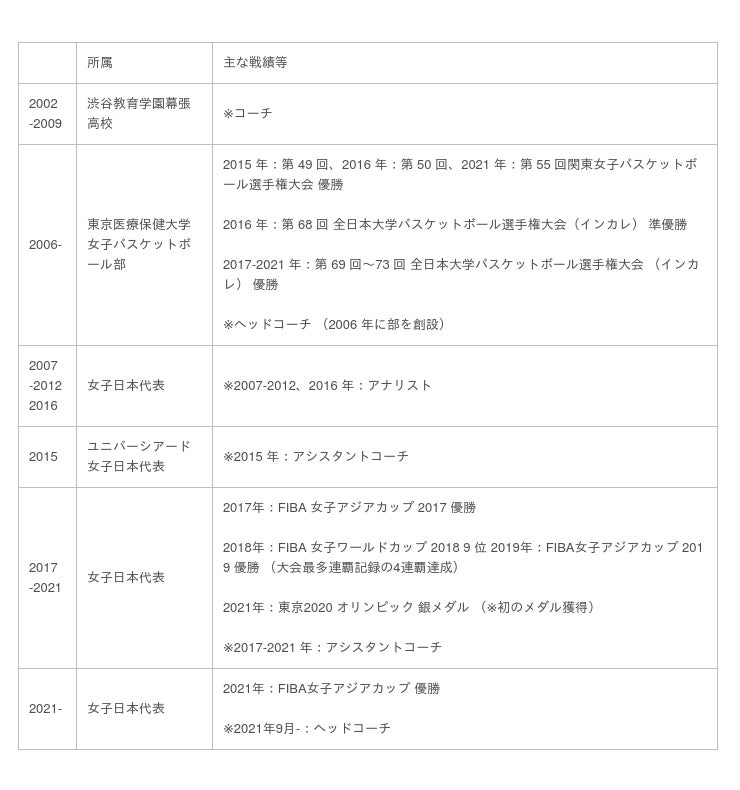 また、一方で恩塚監督は、バスケットボール女子日本代表においても、2006年からビデオコーディネーター、2017年からはアシスタントコーチとして活動していました。2021年9月にはヘッドコーチに就任し、直後に実施された「FIBA女子アジアカップ2021」で優勝を果たしました。今年度で東京医療保健大学の監督を退任し、2022年度からは代表活動に専念し、パリ五輪での優勝を目指していきます。