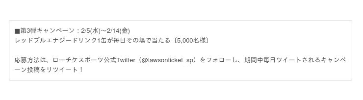 ローソンチケットでは、観戦チケットを取り扱うほか、本日より『レッドブル・アイスクロス・ワールドチャンピオンシップ』の日本開催を記念したTwitterフォロー&リツイートキャンペーンを実施し、大会を盛り上げてまいります。
