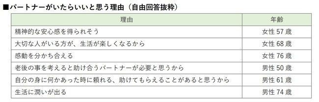 毎年、既婚の男女に対して夫婦関係に関する調査を実施していますが、今年は未婚者も加え、パートナーの有無や関係についても聴取しました。シニアは配偶者やパートナーに何を求め、どんな想いを持っているのかを探るべく、本調査を実施しました。