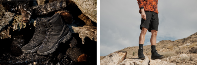 発売以来2,500万足以上の累計販売数を誇るMERRELLのレジェンドシューズ「MOAB」をベースに作られた当製品は、唯一無二の履き心地を生み出す優れたフィット感と軽量性を備えています。また、耐摩耗性をサポートするヒール&トゥラバーキャップや頑丈且つ軽量なノンメタリックハードウェアの使用、更にアッパーの耐久性を高めるラバライズドメッシュを採用(8インチ、ミッドモデルのみ)するなど、タフなコンディションでの使用を想定した、まさにミルスペックのMOABです。