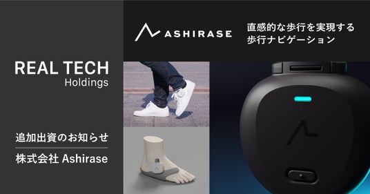 リアルテックホールディングス株式会社(所在地:東京都墨田区、代表:丸幸弘、永田 暁彦)が運営するリアルテックファンド*は、視覚障がい者向け歩行ナビゲーションを開発するベンチャーである株式会社Ashirase(本社:東京都港区、代表取締役社長:千野歩、以下「Ashirase」)へ追加投資を実施したことをお知らせ致します。Ashiraseはクラウドファンディングによって先行販売モデルを販売し、120名の方々からのフィードバックを頂き、よりスムーズなユーザーの移動を実現する一般販売モデルを開発しました。