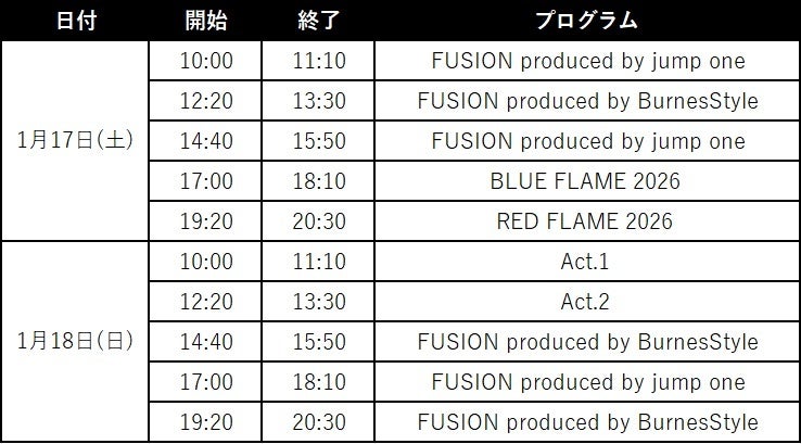 本イベントでは、「BurnesStyle」・「jump one」各ブランドによる単独プログラムと、2ブランド合同のコラボプログラム『FUSION』を開催します。