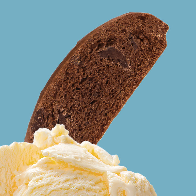 『ダンキンビスケット』は、10秒間ほど飲み物に浸すと、驚くほど柔らかでしっとりとした口当たりをお楽しみいただけます。また、細かく砕いてバニラアイスクリームに混ぜたり、甘口の赤ワインと合わせたりして、デザートとしてもお召し上がりいただけます。