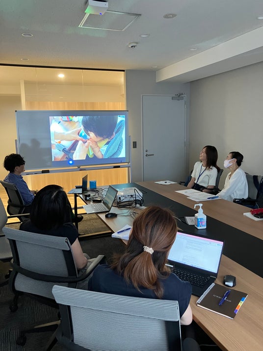 <シッターの目線動画をみるシッター、コーディネーター、母親のフィードバック会議の様子>