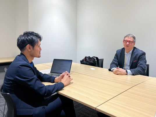 インタビューの様子(画像左:当社 Developer Relations室 会員基盤 チームリーダー 山田 郷、右:Neal Ford氏)