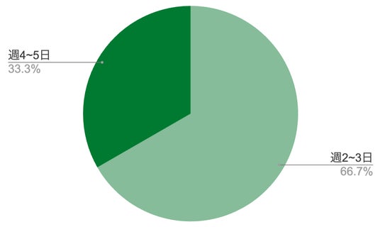 92%がリモートの案件で在宅勤務も可能、働く場所にしばられない自由な働き方に近づけます。案件の平均稼働日数は週2.4日、週1~週3日の案件が多く、あともう1案件ほしい時など効率よく複業案件を探すことができます。