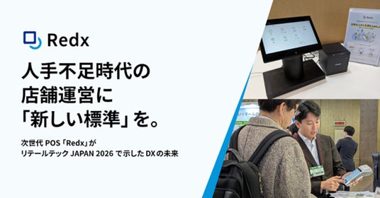 近年、小売業が直面する「人手不足」と「コスト増」に対し、Redx(R)はマニュアルを必要としない直感的なUI(操作画面)と、場所を選ばない機動力を融合させた実機でのデモを展示し、多くの来場者から、既存の店舗運営をシンプルに変えるソリューションとして、高い関心を集めました。1台でPOSと決済を兼ね備える決済端末Redx(R) Mobile(以下「モバイルPOS」)はキャッシュレス処理のみならず、「据置POS」と連動することで現金決済(釣銭機連動)も実現する現場に最適なスタイルを提供。