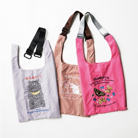 裏地に再生ポリエステルを使用。バッグの表地には、絶滅危惧種の動物たちの刺しゅうを施し、環境保護と動物との共生を伝えるメッセージを発信している。