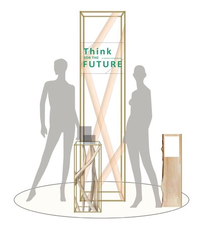 そこで「地元応援」・「地域活性化」を目的に、間伐材を使ったアート装飾が各階に登場するほか、販売で使用する什器も間伐材を使った木製ツールを使用いたします。