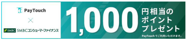 また、PayTouchを通じて初めてローンを利用するお客さまには特典として出店ショップでご利用できる1,000円相当のポイントをプレゼントします。
