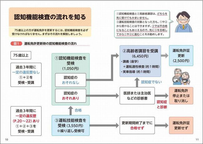 検査の内容とその流れがひと目でわかるマンガやフローチャート、合格するためのコツ、本番と同じ4回分の練習問題、合格後に脳をボケさせないための10のアドバイスなど、検査を合格しクルマを運転し続けるための工夫が盛りだくさん! 家族とともに楽しいカーライフを送り続けられるのに欠かせない一冊となっています。