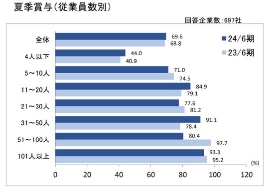 - 夏季賞与支給企業増加 金額微減:「支給する」69.6%