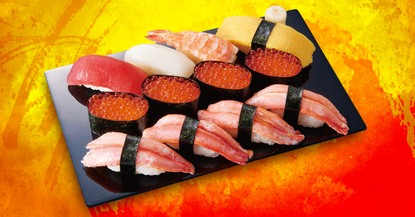 大人気ネタ【かに】と【いくら】がたっぷり満載の『特選かにいくらフェア』!!開催期間中に是非!小僧寿しへ!
